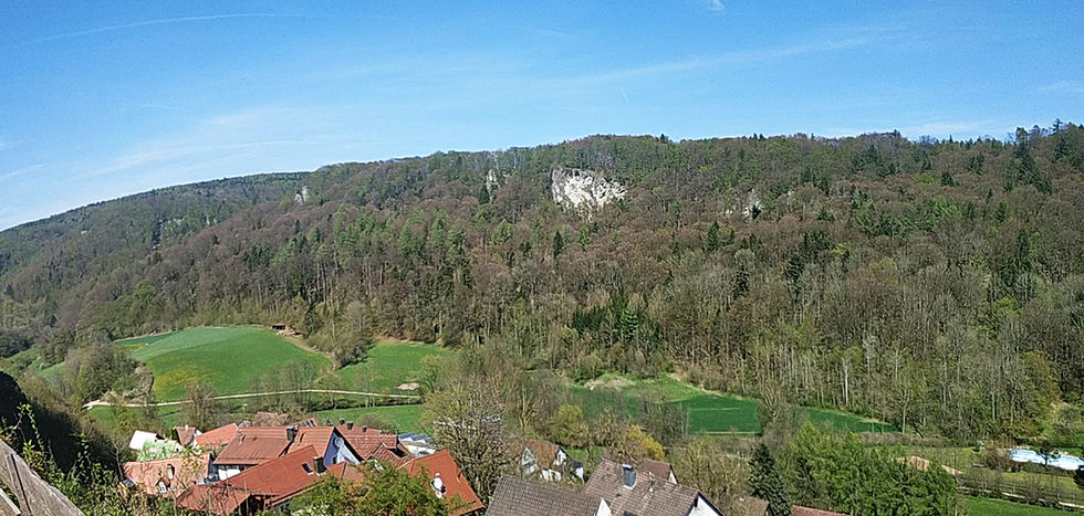 eine geräumige Sonnenterasse mit Blick über das romantische Egloffstein; Grillmöglichkeit